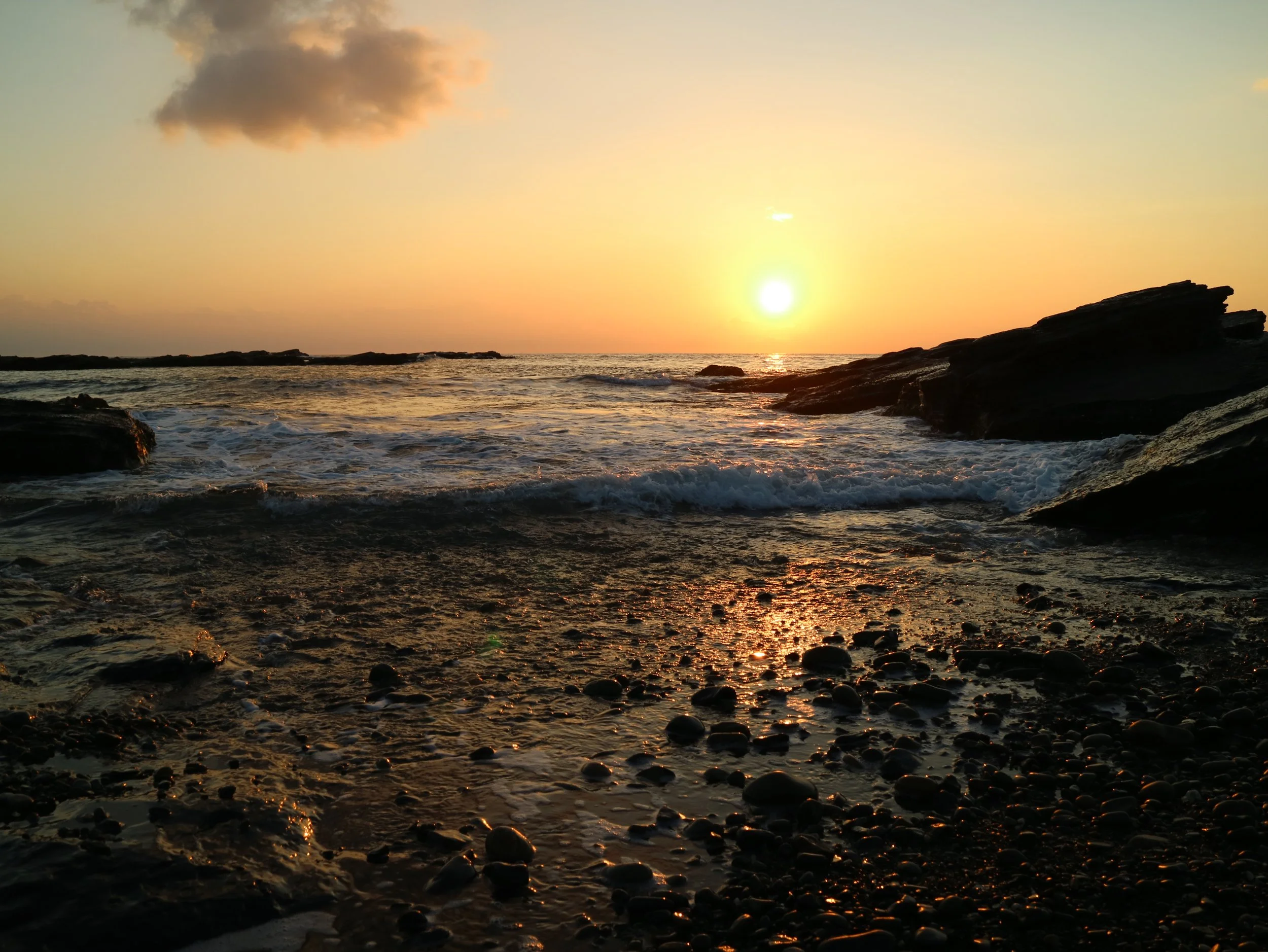 我始終認為,我是一位海上追光者。在宜蘭頭城大里海邊的某個下午,太陽在海平面上灑下一條長長的金光大道,那條光帶如此耀眼,彷彿通往一個未知的、充滿啟發的領域。遠方的漁船緩慢移動,成為這無盡光海中唯一的焦點。我感覺自己就像畫中的船隻,不斷地追逐著稍縱即逝的吉光片羽。我用強烈的色彩對比,描繪出深藍色海水與耀眼金光之間的戲劇張力。這不僅僅是一幅海景,它是我追尋內在「光」的途徑的體現。